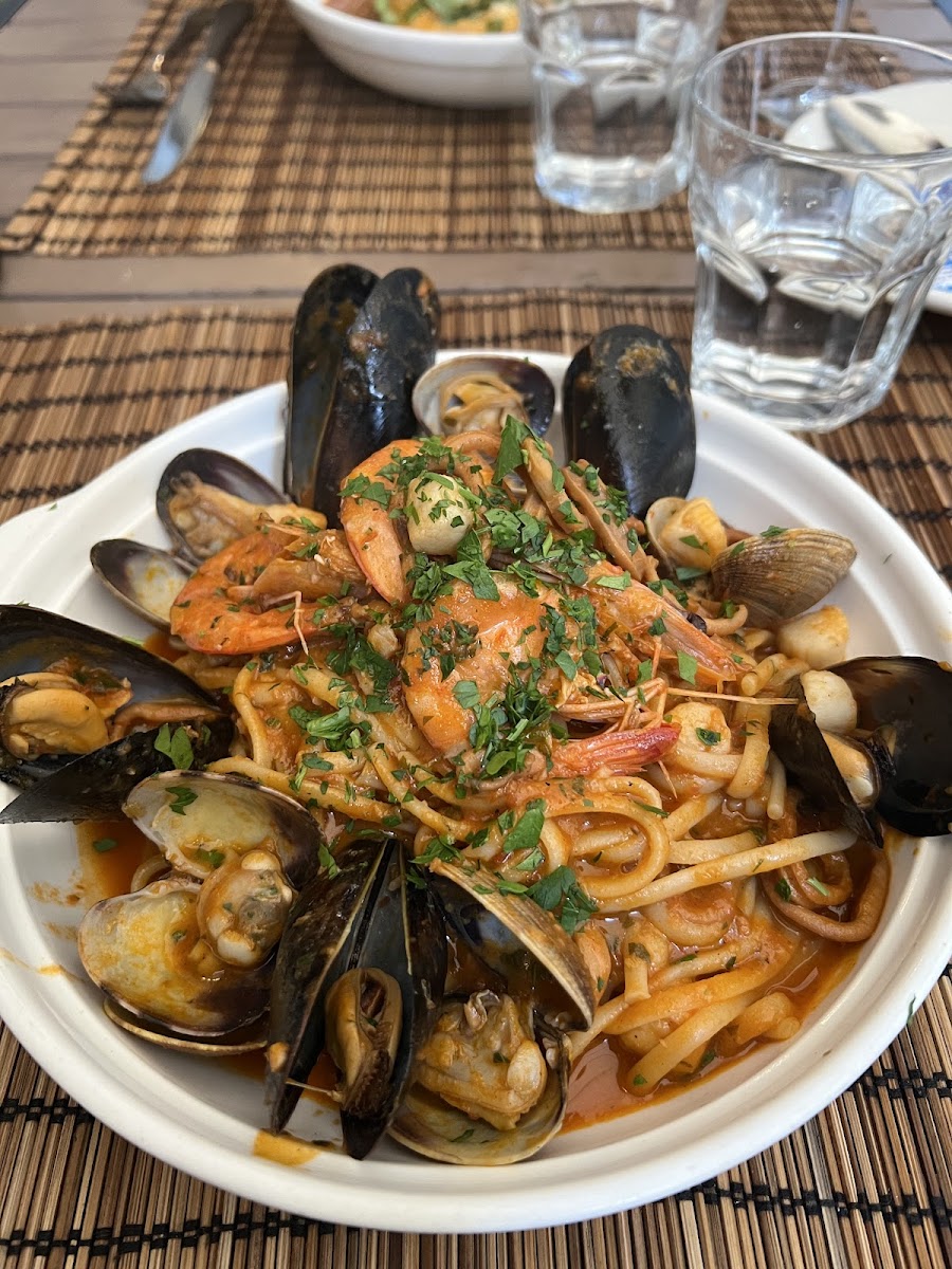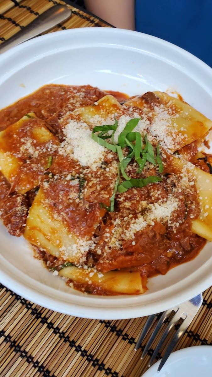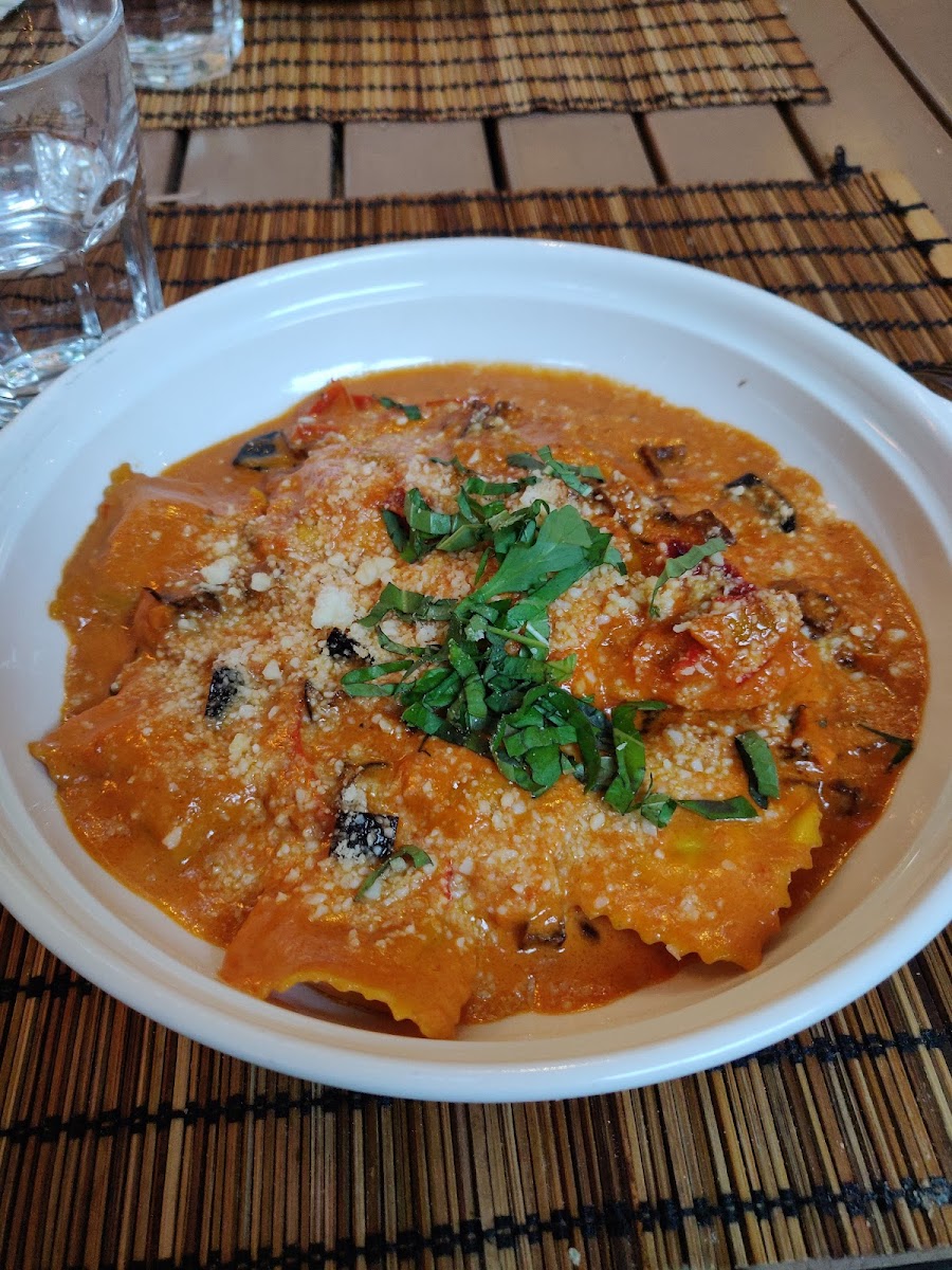 For pasta lovers, the Pescatora is a must-try. With its linguine mingling in a delicate garlic cherry tomato sauce alongside fresh clams, mussels, calamari, and prawns ($45), this dish encapsulates the magic of coastal Italian dining. Don't miss the Ravioli di Campagna, filled with sun-dried tomatoes and ricotta cheese, adored for its light tomato cream sauce layered with eggplant and bell peppers ($38).
